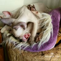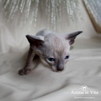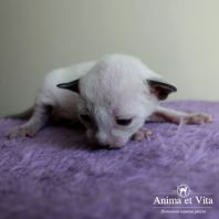 Три месяца! Так мало и так много. BASIO вырос очень добрым и ласковым котенком. В то же время веселым и жизнерадостным. У него красивый ровный цвет шерстки, очень красивого цвета глаза, большие высокие ушки. Ему очень необходима теплота ваших рук и защита. Иногда где-то в другой комнате он громко мяукнет - его окликнешь - он тут как тут и уже устраивается на коленях и поет свои песенки. Ему необходимо как воздух общество человека. Он очень любит, когда с ним разговаривают! Разговаривайте с ним, он слушает! Сегодня малыш покидает питомник. Будь счастлив в новой и любящей семье!
