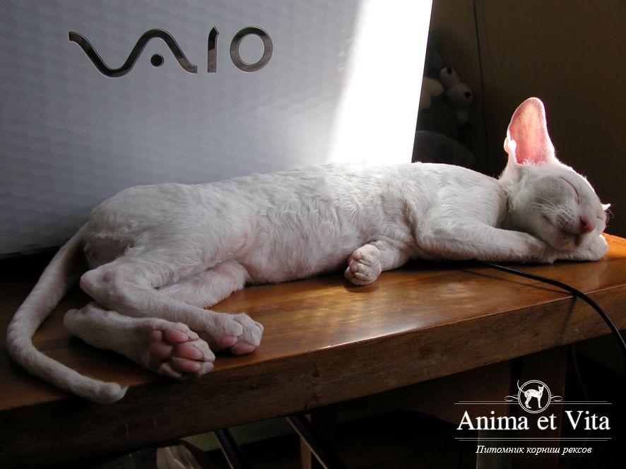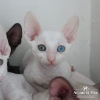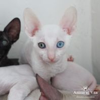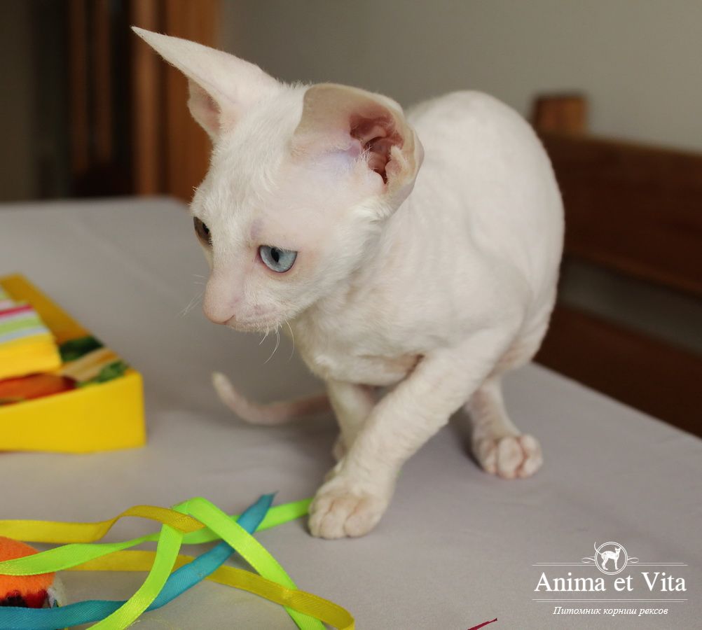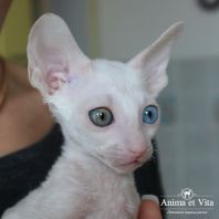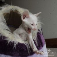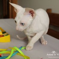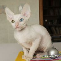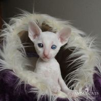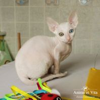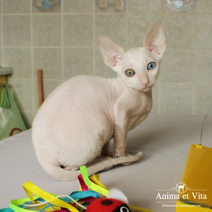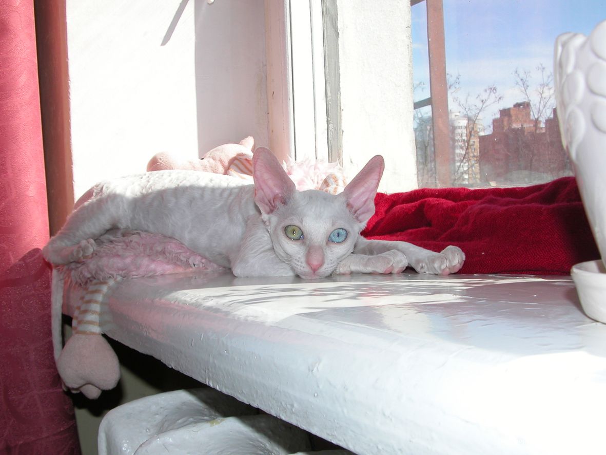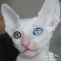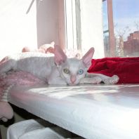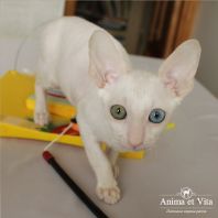 Альбе на главном фото почти 3 месяца. Она взрослеет и превращается в красивую белую миниатюрную кошку с завораживающим глубоким взглядом. Она очень тонкая и изящная. И разноглазые животные поистине завораживают! По характеру шустренькая, веселая, озорная. Она никогда без причины не мяучет, не плачет. Не требовательна. Альбе попалась чудесная молодая пара, где я ей желаю счастья, крепенького здоровья, взаимопонимания и сильной любви. Будь счастлива и приноси счастье в свой новый дом, как это положено разноглазым кошкам!