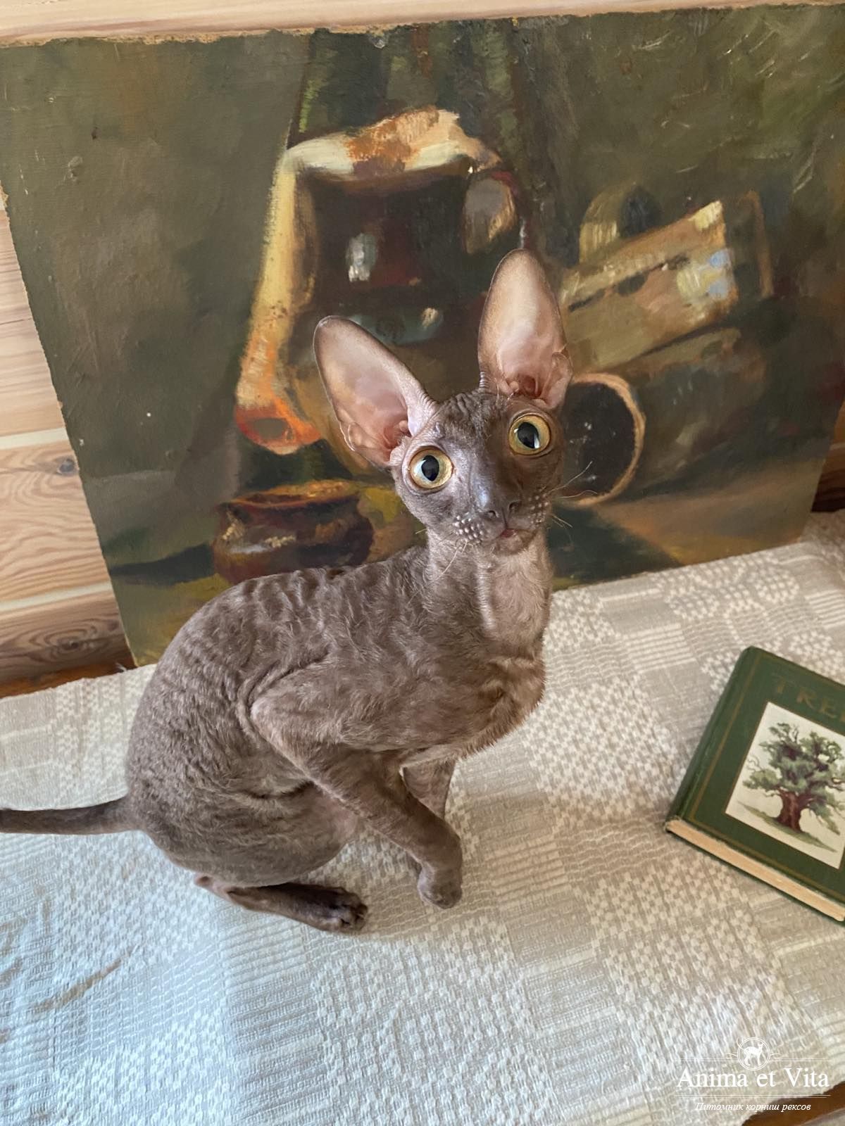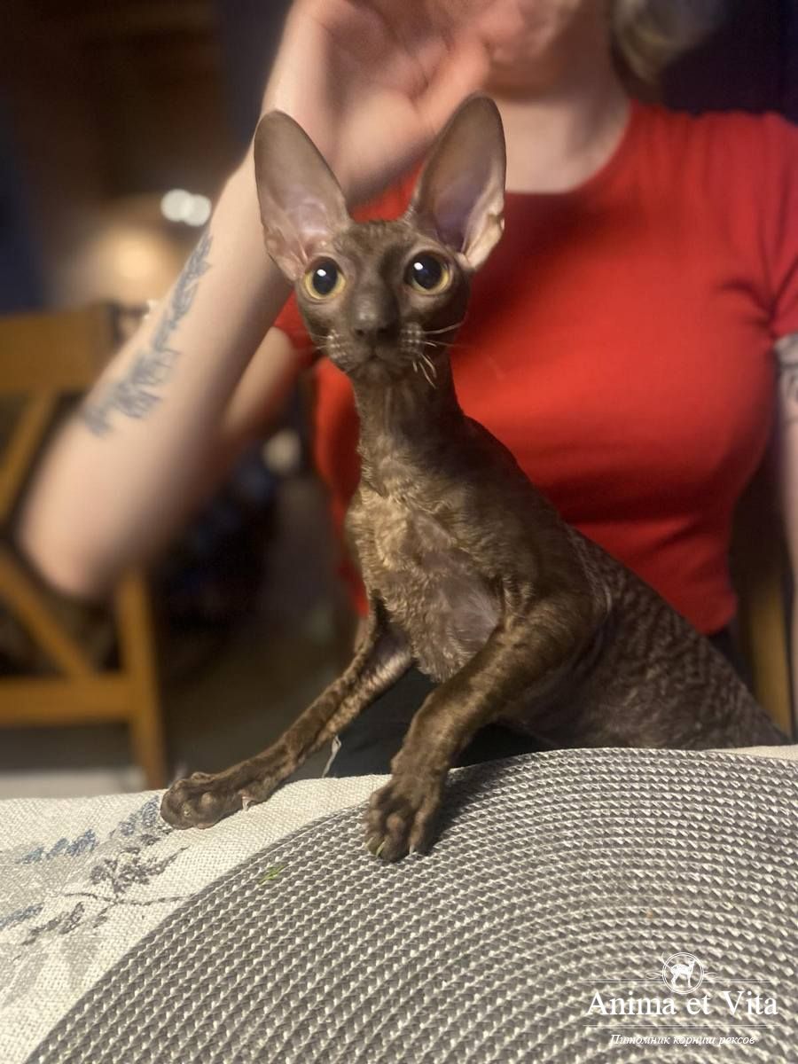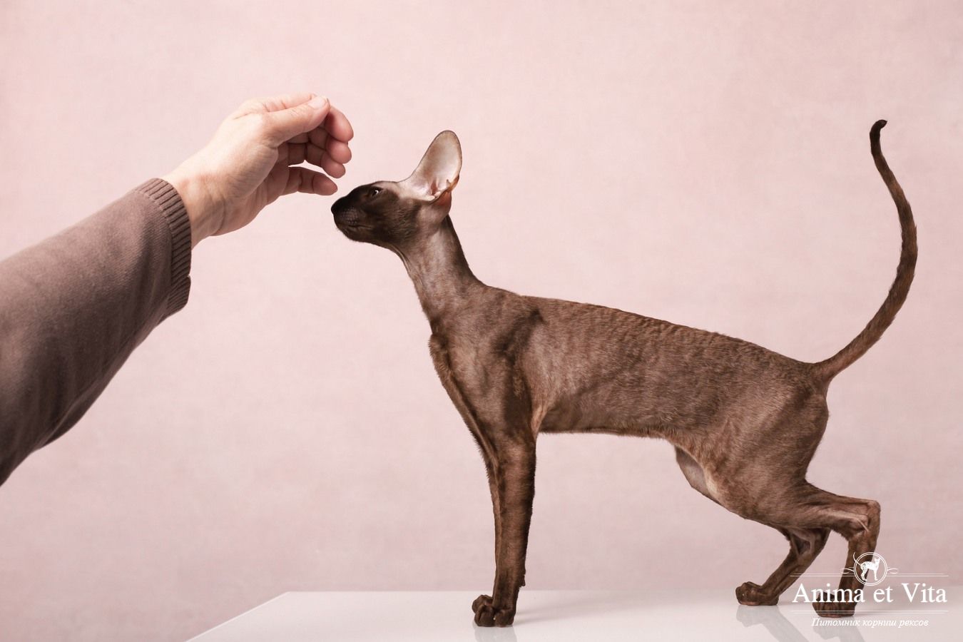 Наша сладкая шоколадная Баттерфляй. В эту кошку было невозможно не влюбиться. Миниатюрная, любопытная, с повадками обезьянки. Она постоянно рядом. Очень любит сидеть на ручках, все вокруг рассматривая. С прекрасным экстерьером - красивого цвета шоколадная шерсть, некрупная, тонкая, прыгучая. Миловидная мордочка с огромными красивого разреза глазами и открытыми хорошо поставленными ушами. Оставлена питомником для участия в племенной программе.
