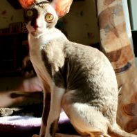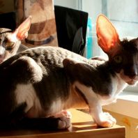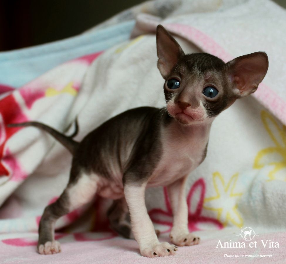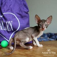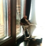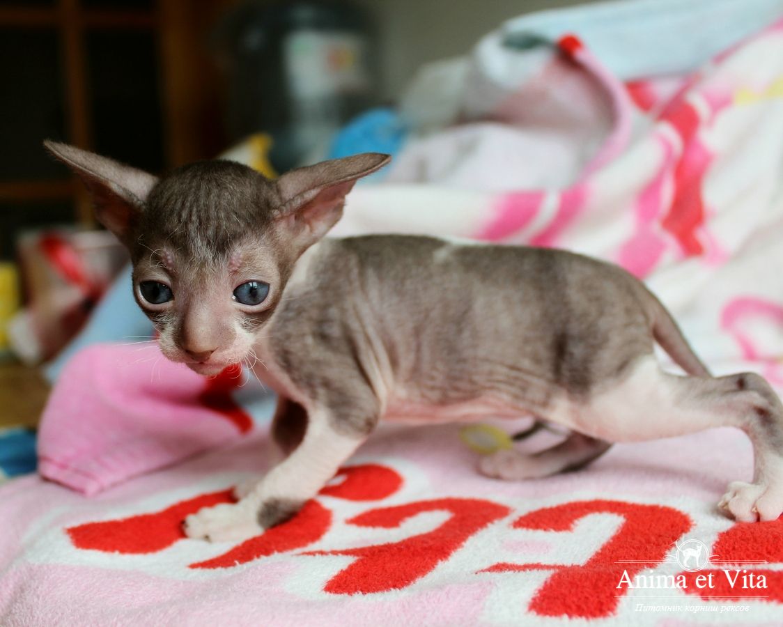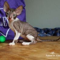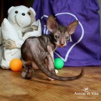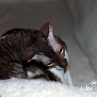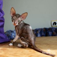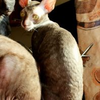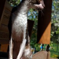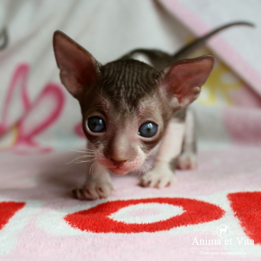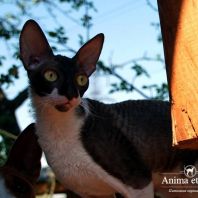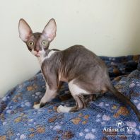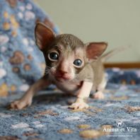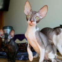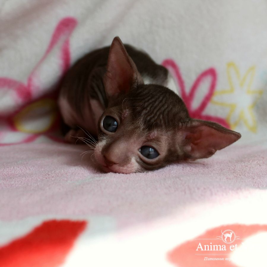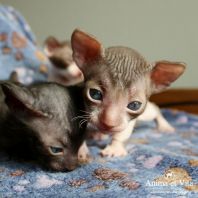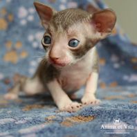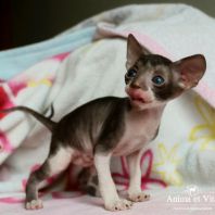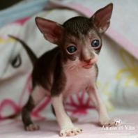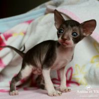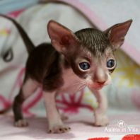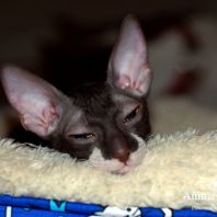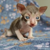 Смотришь на это создание и сразу понимаешь, что это она, "девочка"))). Ева. Огромные глаза, огромные уши, сама мелкая, тонкая и изящная. По характеру - это маленькая леди. Она любит наблюдать за всем происходящим со стороны - как будто что то осмысливает своей миниатюрной головкой. И вдруг, увидев что то, по ее мнению, очень интересное - прыгнуть и словить или брата за хвост, или сестричку за ухо, или запрыгнуть на нашу маленькую собачку Мальту и, напугав ее и напугавшись сама))) - обратно сигануть в укромное место и следить дальше. Она очень аккуратная, милая, нежная, ласковая, ранимая.... Очень много и долго можно говорить, какая она... Просто она создана для того, чтоб ею любовались и любили...