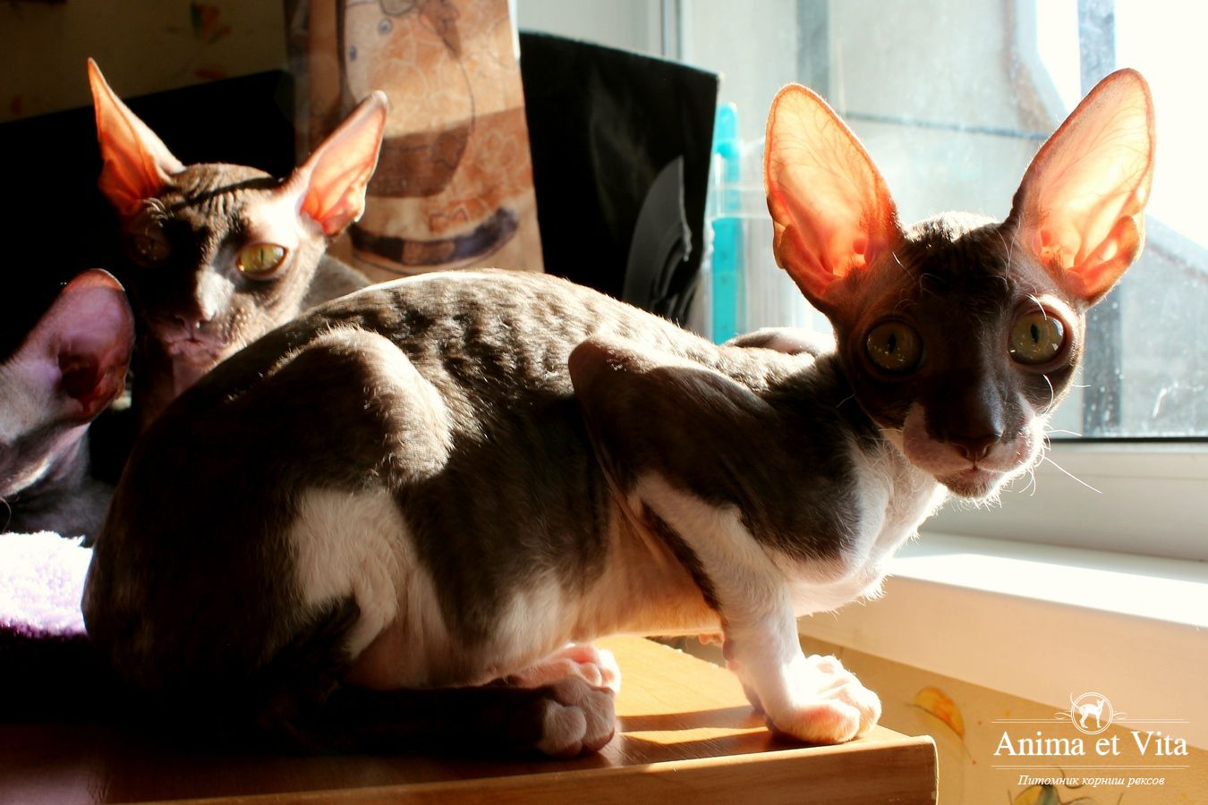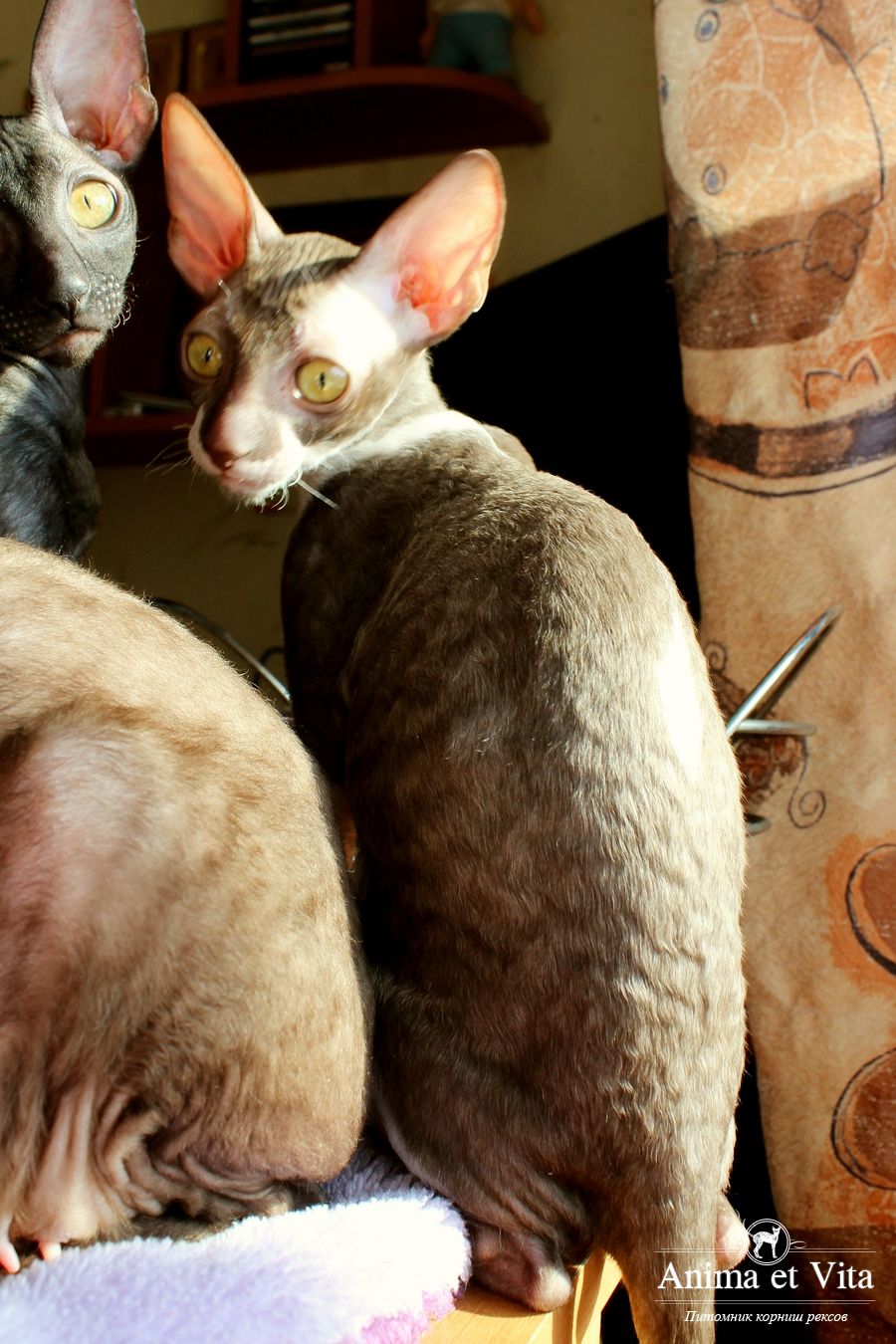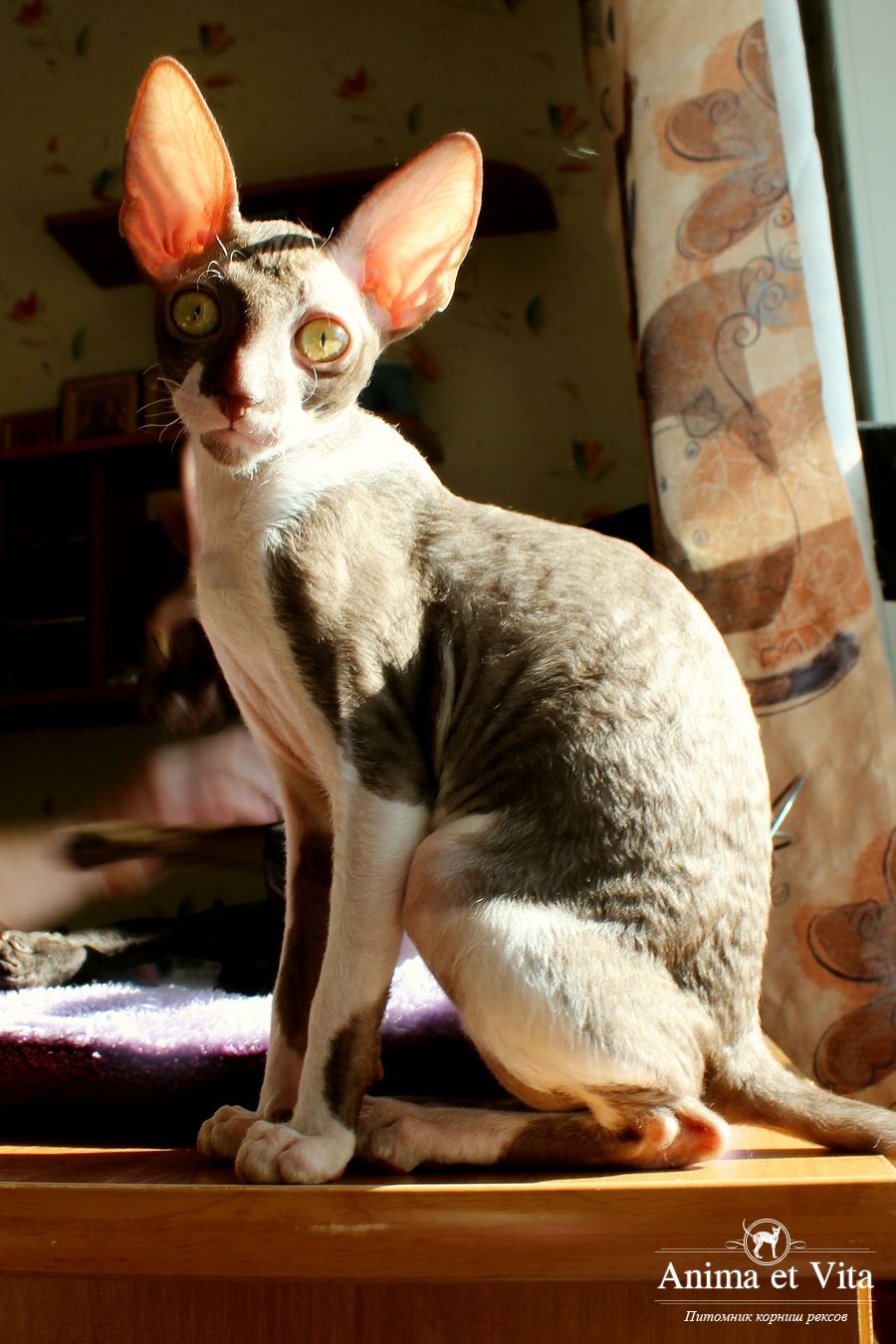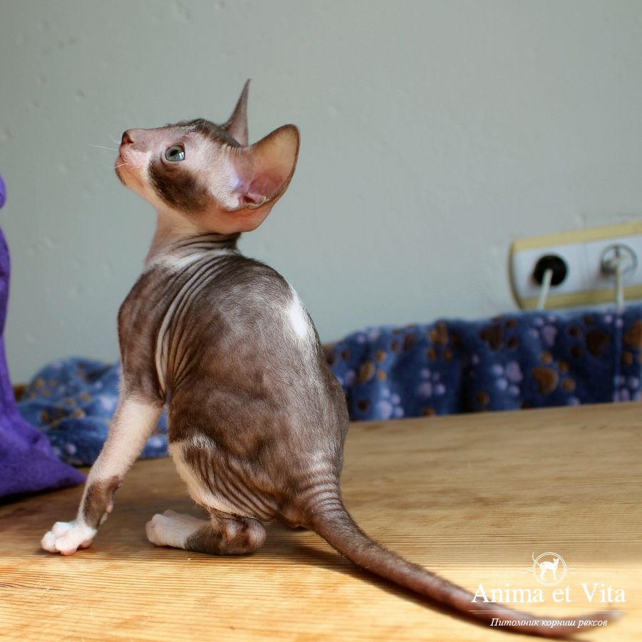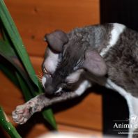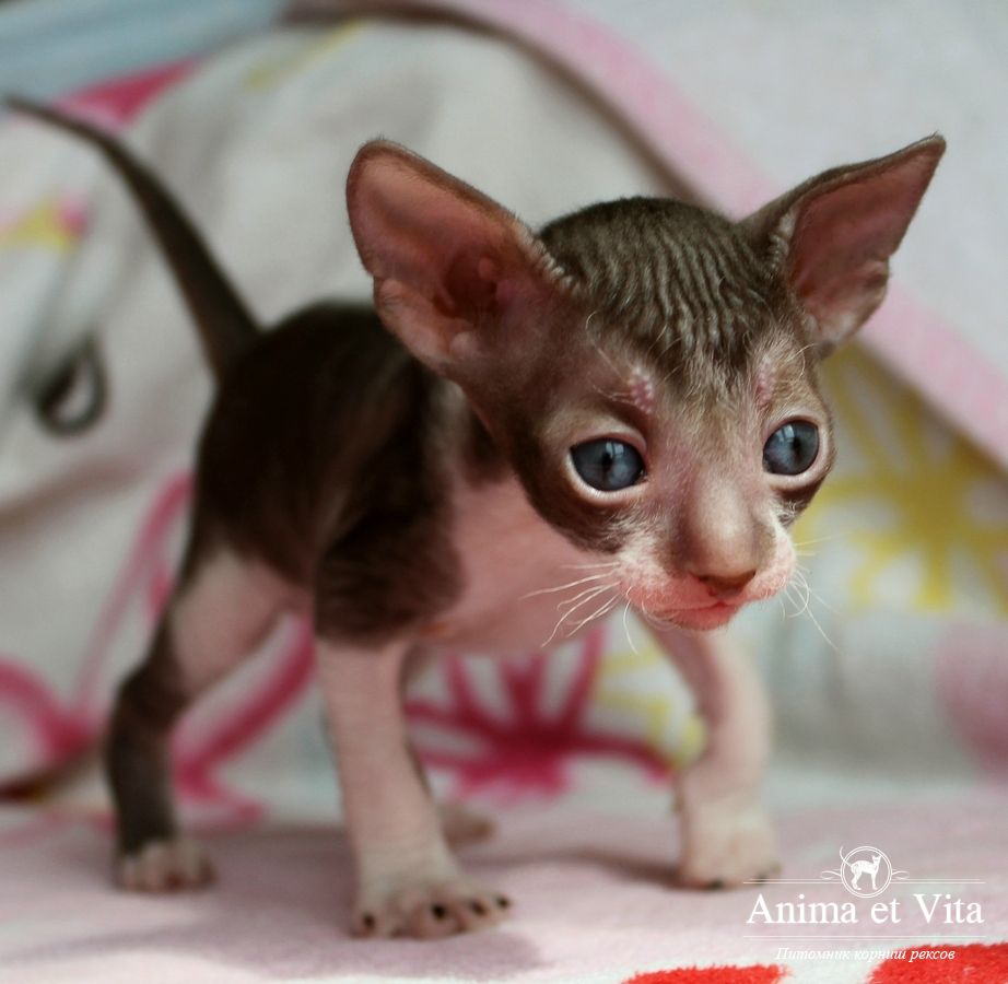 Смотришь на это создание и сразу понимаешь, что это она, "девочка"))). Ева. Огромные глаза, огромные уши, сама мелкая, тонкая и изящная. По характеру - это маленькая леди. Она любит наблюдать за всем происходящим со стороны - как будто что то осмысливает своей миниатюрной головкой. И вдруг, увидев что то, по ее мнению, очень интересное - прыгнуть и словить или брата за хвост, или сестричку за ухо, или запрыгнуть на нашу маленькую собачку Мальту и, напугав ее и напугавшись сама))) - обратно сигануть в укромное место и следить дальше. Она очень аккуратная, милая, нежная, ласковая, ранимая.... Очень много и долго можно говорить, какая она... Просто она создана для того, чтоб ею любовались и любили...