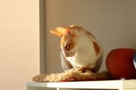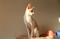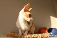 Солнечная кошка Олимпия. Хотелось бы отметить высокий интеллект, совершенно спокойный и уравновешенный характер, чувство сильной любви и привязанности как ко взрослому человеку, так и к ребенку, совершенное отсутствие агрессии и злопамятности. Не пуглива, любит быть рядом, отзывается на имя как собачка. Некоторое время, около полугода, жила на передержке в семье с маленьким ребенком, возраст которого меньше года. Была для него теплой и мягкой няней. Общение ребенка и кошки, где полностью раскрывается характер Олимпии, можно увидеть тут и тут. Спасибо Наталье Головановой за кошечку, выращенную с любовью. Это проявляется и читается во всех ее повадках. Я очень рада, что эта кошка, будучи уже взрослой, оказалась у нас в питомнике и будет участвовать в племенной программе.