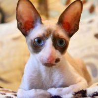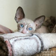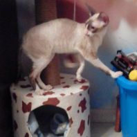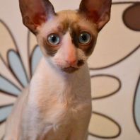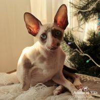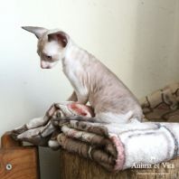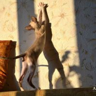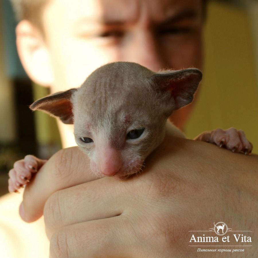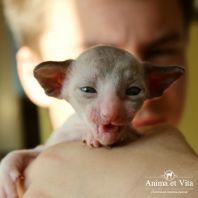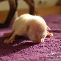 А эта красавица окрасом пошла в папу! Но мне кажется, что не только окрасом. Она длинноухая и большеглазая. И такие осмысленны глазенки! Очень забавная мордашка! Она мне напоминает сказку о гадком утенке. Сейчас она очень смешная и забавная. Без улыбки на нее нельзя смотреть. Но я уверена, она вырастет и будет очаровывать всех своим окрасом, большущими цвета моря глазенками и тонким станом.